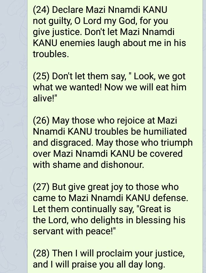 Oluchi System On Twitter Our Prayer For Mazi Nnamdi Kanu Continues July 4 Day 35 Psalm 35 Bible New Living Https T Co Nsoavbjshi Twitter